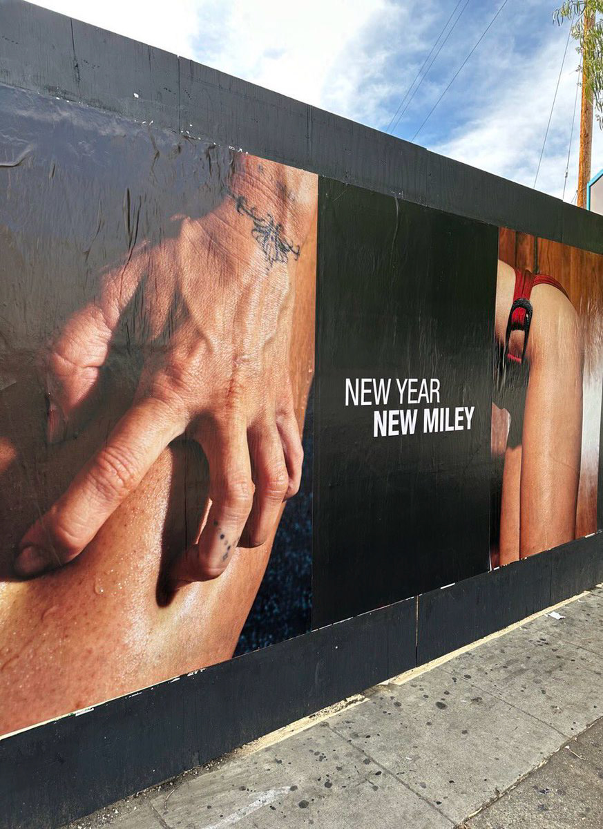 Upon seeing photos of these posters online and in person on a trip to California, I wondered if they were teasing a “New Miley” in the form of new music, or if they were just promoting Cyrus’ New Years Eve special with Dolly Parton. I got my answer while watching Miley’s New Years Eve Party as a cryptic video of Cyrus walking up a hill backed by acapella vocals flashed on my TV screen. The rumors were true… Miley is back. The teaser announced that her new single, “Flowers” was to be released on January 13th, the same day as her ex-husband Liam Hemsworth’s 33rd birthday.