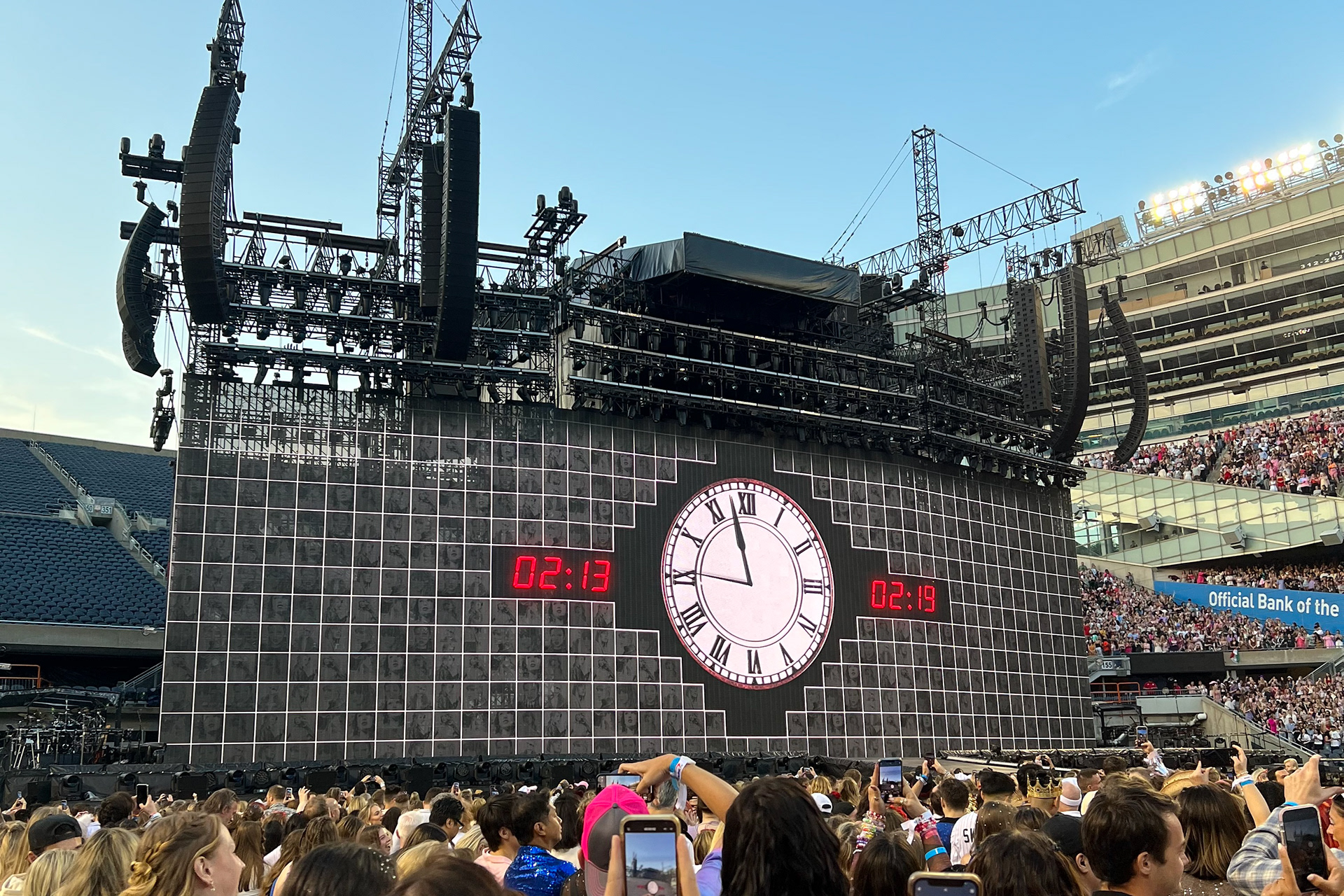 Beginning just before 8 p.m. with a two minute countdown displayed on the massive screens, the sun was still setting as the crowd at Soldier Field had a collective rush of adrenaline. At once, Swift was revealed from a shroud of silky drapes held by her dancers and jumped right into “Miss Americana & The Heartbreak Prince.” The show is divided into separate segments, giving each album and “era” their earned spotlight. The first portion of the show covers “Lover,” and features the undeniable standout, “Cruel Summer.” After encouraging the crowd to scream the bridge with her–as if her encouragement was required–every person in the stadium was out of their seats, singing back the refrains as loud as they could. The start time of the show placed the first half-hour or so in front of the lakeside sunset, which only enhanced the hues of the “Lover” color-scheme and aesthetic. Coincidence? Knowing Swift, doubtful.